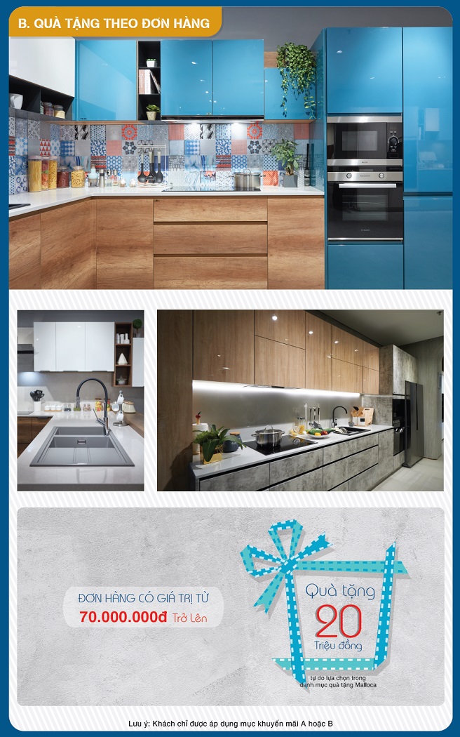 Cơ hội duy nhất trong năm với phần quà tặng trị giá lên tới 20 triệu đồng cho các sản phẩm bếp, lò, máy hút mùi, chậu rửa,... đến từ hãng thiết bị nhà bếp hàng đầu Việt Nam được nhiều người ưa thích. Để giúp quý khách hoàn thiện căn bếp hiện đại và thông minh, Bep365.vn với sự đồng hành của Malloca hân hạnh cung cấp cho quý khách hàng các sản phẩm nhà bếp với chương trình khuyến mãi đặc biệt “Bếp xịn thời trang - nấu nướng dễ dàng” diễn ra trên toàn quốc.