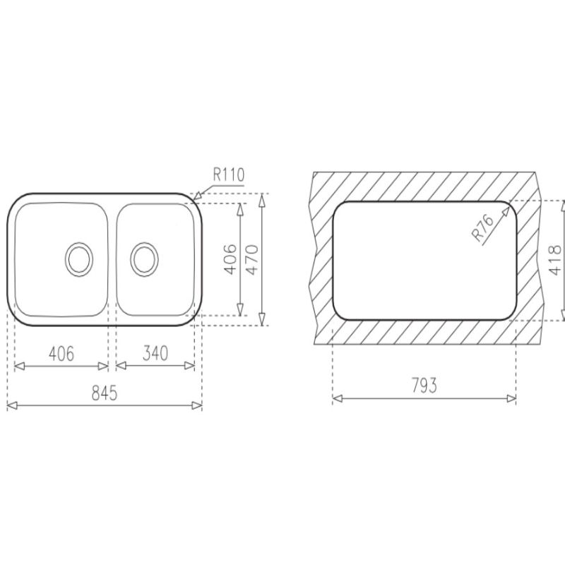 | Loại chậu | 2 hộc rửa, lắp âm (Undermount) |