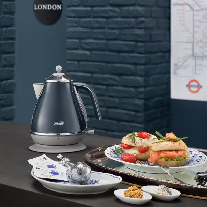 Ấm đun nước De’Longhi KBOC2001.BL mang đậm phong cách Icona Capitals với thiết kế Ý tinh tế, lớp hoàn thiện kim loại bóng sang trọng và gam màu xanh London Blue nổi bật, không chỉ giúp đun sôi nước nhanh chóng mà còn trở thành điểm nhấn hiện đại, thanh lịch cho không gian bếp của bạn.