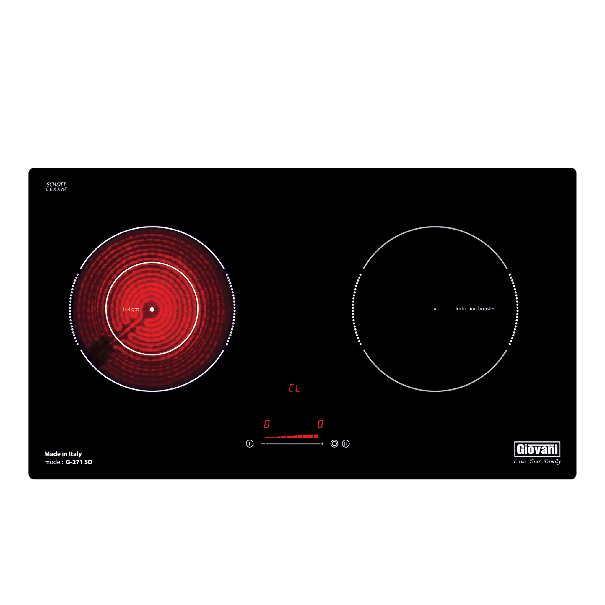 Bếp điện từ G-271 SD là dòng bếp hỗn hợp 1 từ + 1 điện, mang đến sự linh hoạt trong nấu nướng với khả năng sử dụng đa dạng loại nồi. Sản phẩm sử dụng mặt kính SCHOTT Ceran (Đức) cùng linh kiện cao cấp, tích hợp công nghệ Inverter giúp tiết kiệm điện năng và vận hành ổn định.