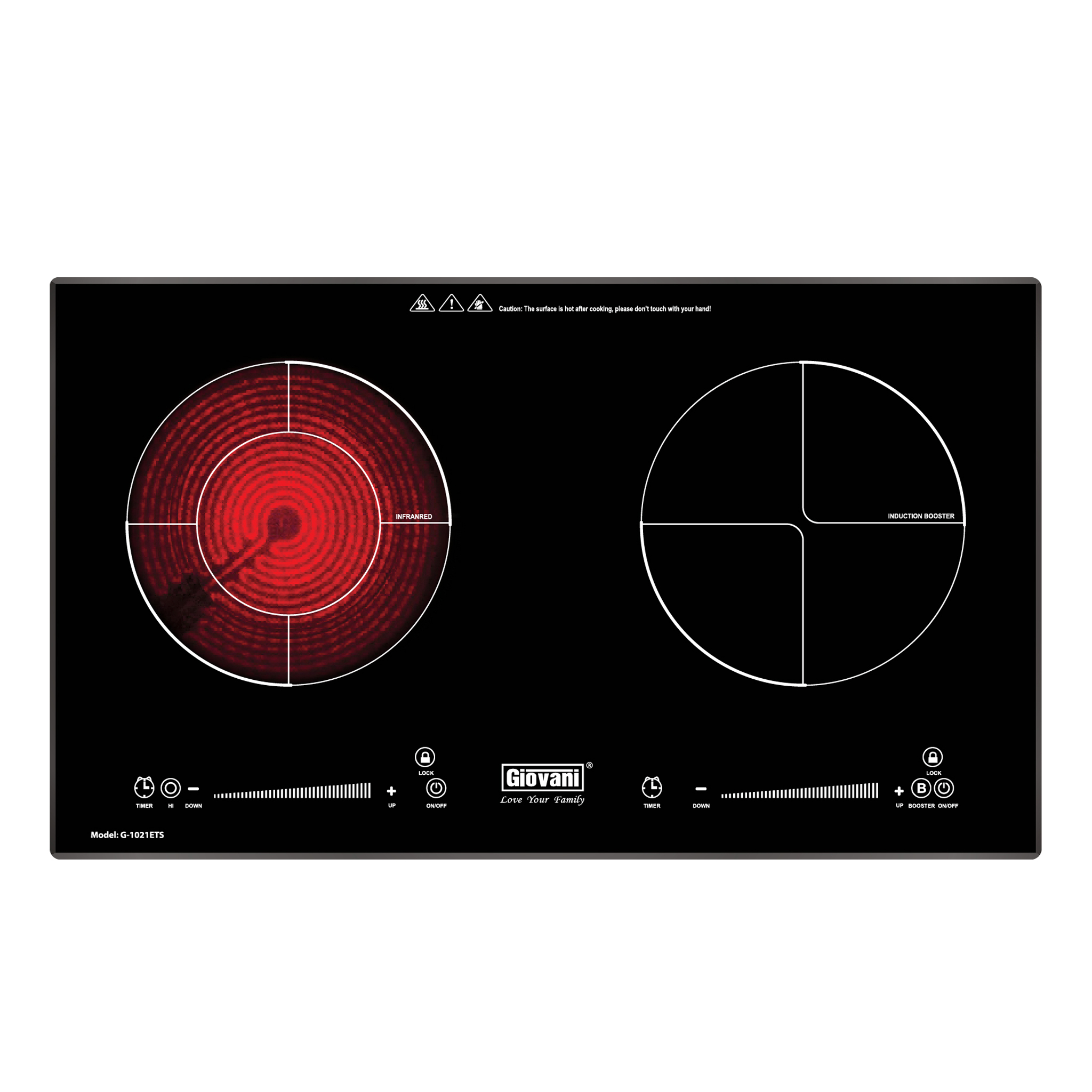 Bếp điện từ Giovani G-1021 ETS là dòng bếp hỗn hợp 1 điện + 1 từ, giúp nấu nướng linh hoạt với nhiều loại nồi khác nhau. Sản phẩm sử dụng mặt kính Ceramic vát 4 cạnh chịu nhiệt tốt, kết hợp điều khiển cảm ứng Slider hiện đại, mang lại trải nghiệm sử dụng tiện lợi và hiệu quả.