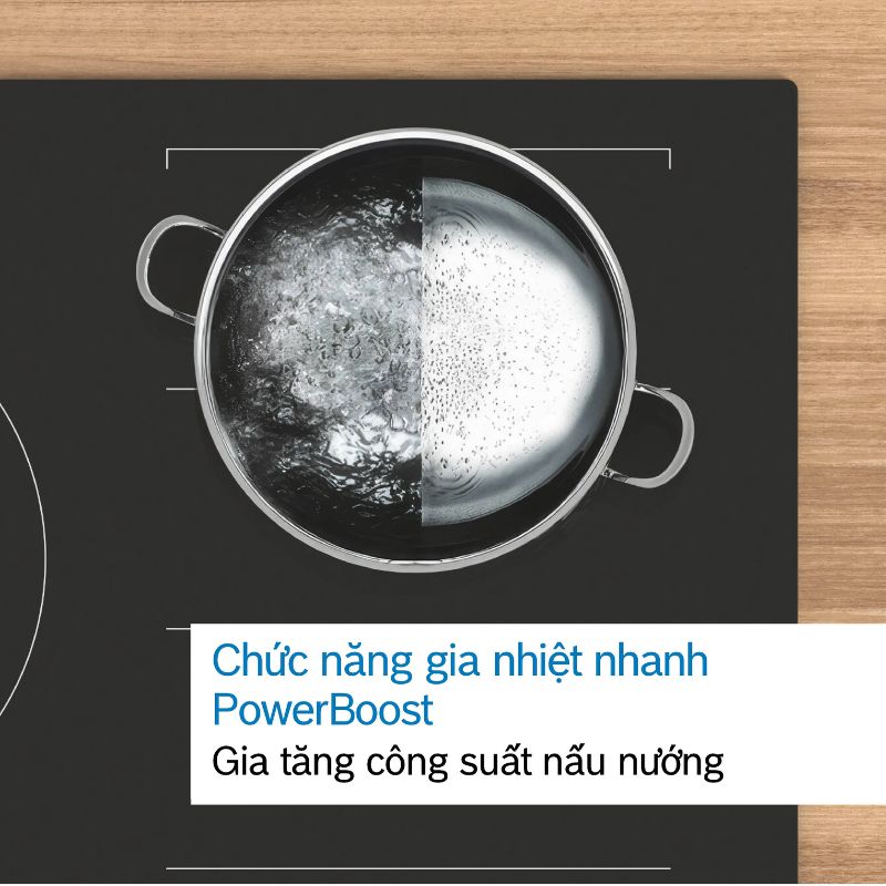 - Bosch PPI82560MS được thiết kế với 9 mức công suất nhiệt, có thể chế biến nhiều món ăn với mức nhiệt thích hợp để đảm bảo dưỡng chất và độ ngon. Hiệu suất đun nấu cao hơn nhờ chức năng gia nhiệt nhanh Booster công suất đạt đến 3100W, tiết kiệm thời gian nấu nướng cho bạn.