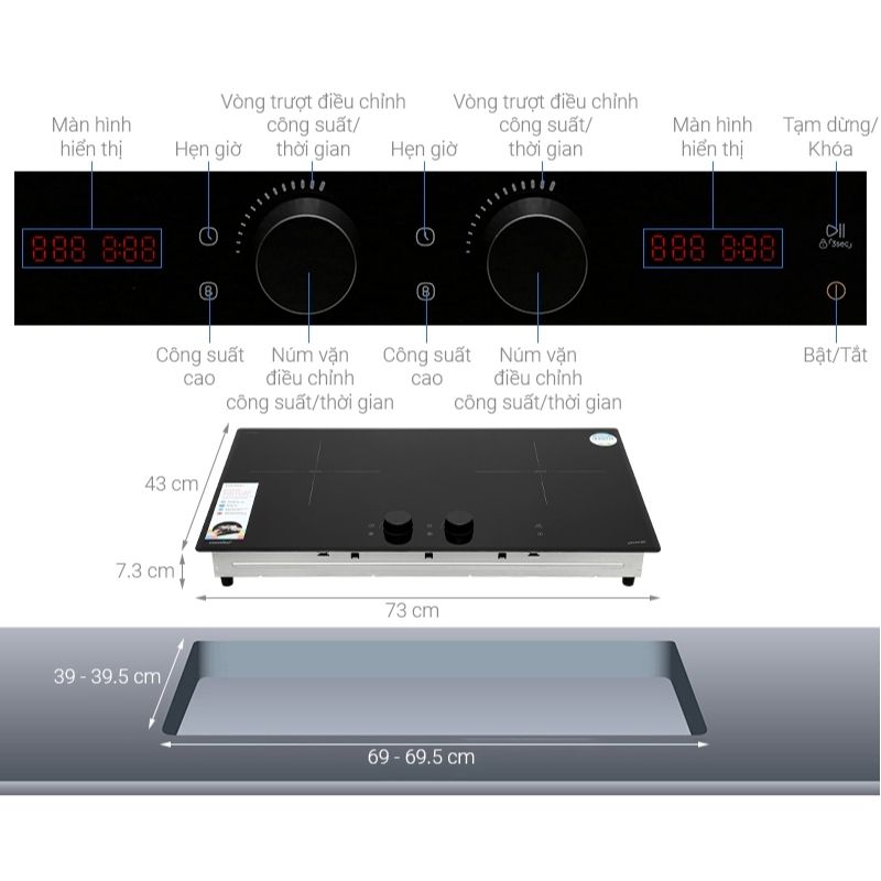 | Loại bếp | Bếp từ đôi, bếp âm cần lắp CB |