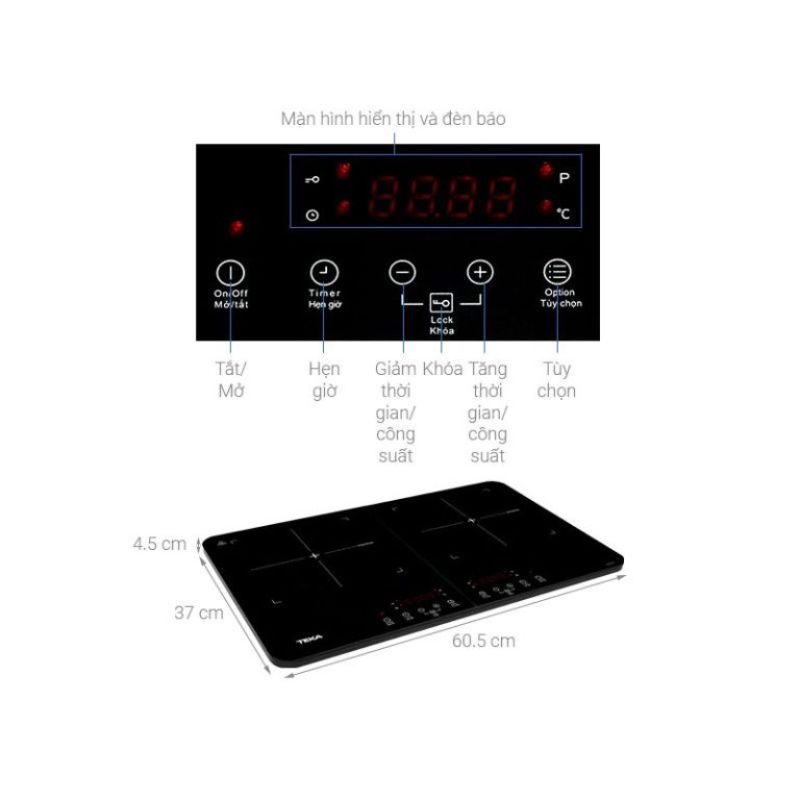 | Kích thước vùng nấu | Trái: Ø 20 cm | Phải: Ø 20 cm |