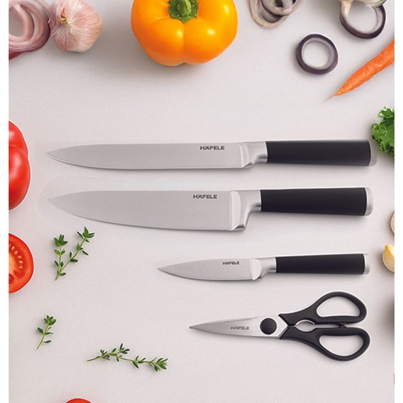 Bộ dao kéo Hafele 535.44.169 là bộ dụng cụ nhà bếp tiện dụng, gồm 5 món cơ bản, đáp ứng tốt nhu cầu sơ chế thực phẩm hằng ngày. Sản phẩm được làm từ thép không gỉ bền bỉ, lưỡi dao sắc bén, tay cầm chắc chắn, thiết kế gọn gàng và an toàn, phù hợp sử dụng trong mọi không gian bếp gia đình.