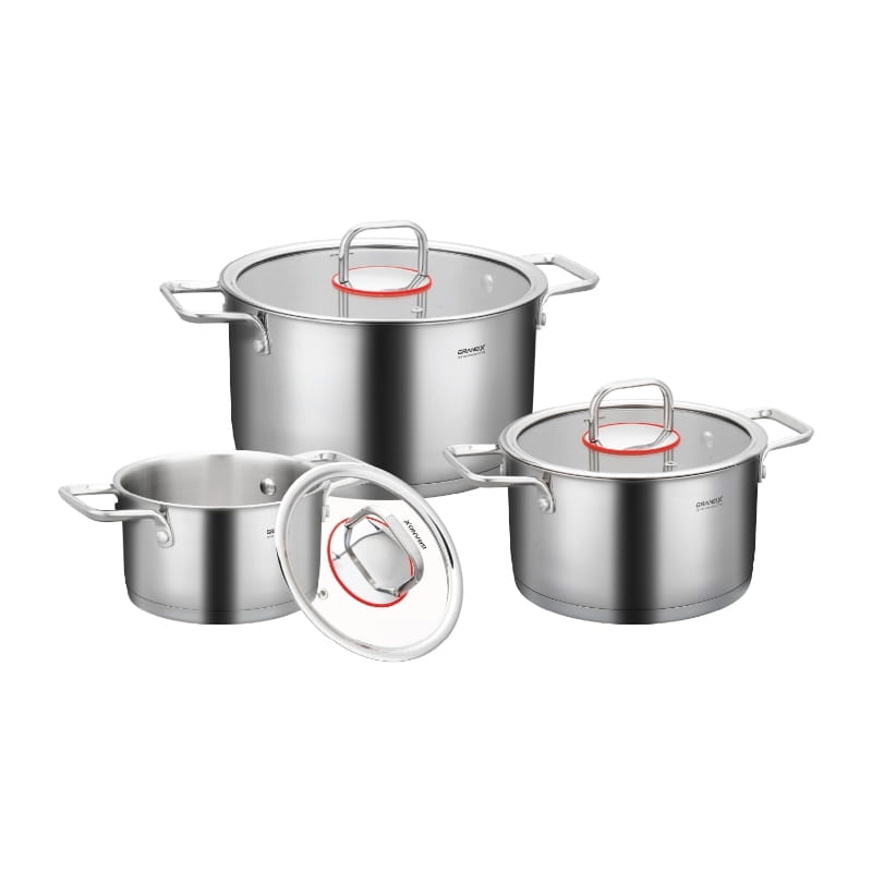 Toàn bộ phần thân tiếp xúc trực tiếp với thực phẩm của Bộ nồi GX603 Nova được làm từ inox SUS304 dày 0.6mm – chất liệu cao cấp thường được sử dụng trong thiết bị y tế và đồ gia dụng cao cấp.