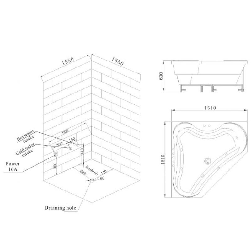 - Kích thước cũng khá nhỏ gọn cho không gian phòng tắm nhà bạn với 1510*1510*690mm. Thiết kế tạo khoảng không gian khá thoải mái cho 2 người cùng sử dụng.