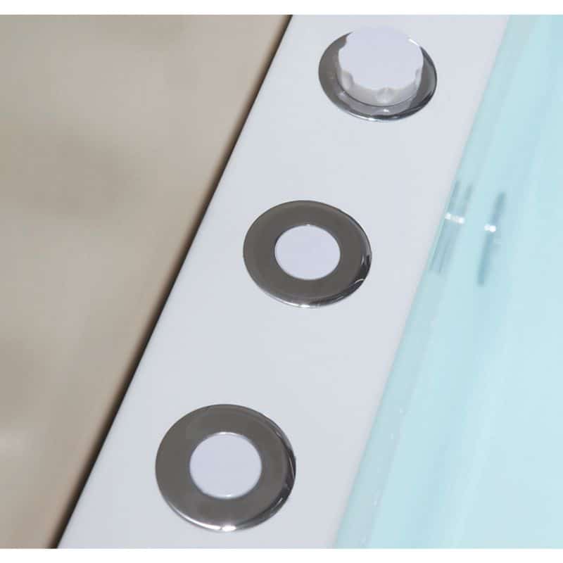 - Đầu viền thành bồn chính là nút công tắc ON/OFF, bảng điều khiển các tính năng từ hệ thống massage cũng như sủi bọt được thiết kế theo phong cách siêu mỏng … Đây là bảng điều khiển thủ công dễ dàng, bạn chỉ việc ấn nút chọn và sử dụng.