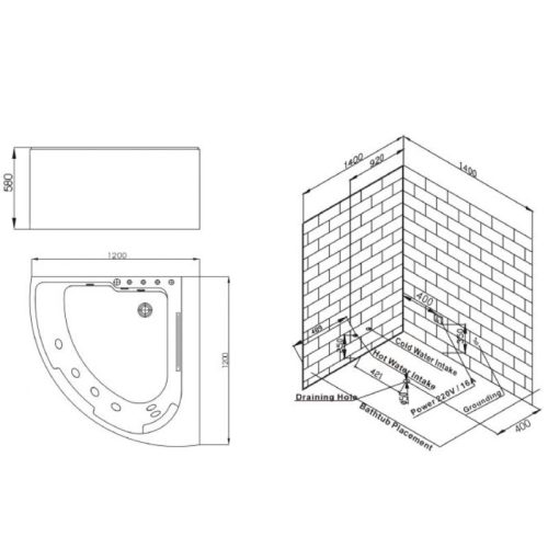 - phía bên ngài trang bị 1 tấm bửng bao ôm lấy bồn tắm.