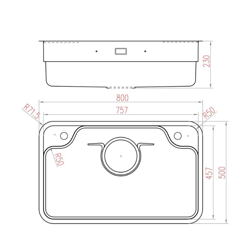 | Kích thước cắt đá âm | 757 x 457 mm, bo góc R50 |