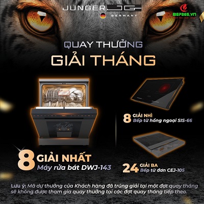 ♦ 08 Giải Nhất: Máy rửa bát Junger DWJ-143 trị giá 19.789.000 VNĐ.