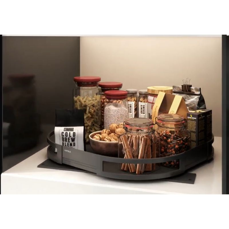 - Cơ chế xoay 360º linh hoạt, cho phép dễ dàng lấy đồ ở mọi vị trí trong tủ mà không cần cúi sâu hay di chuyển các vật dụng khác.