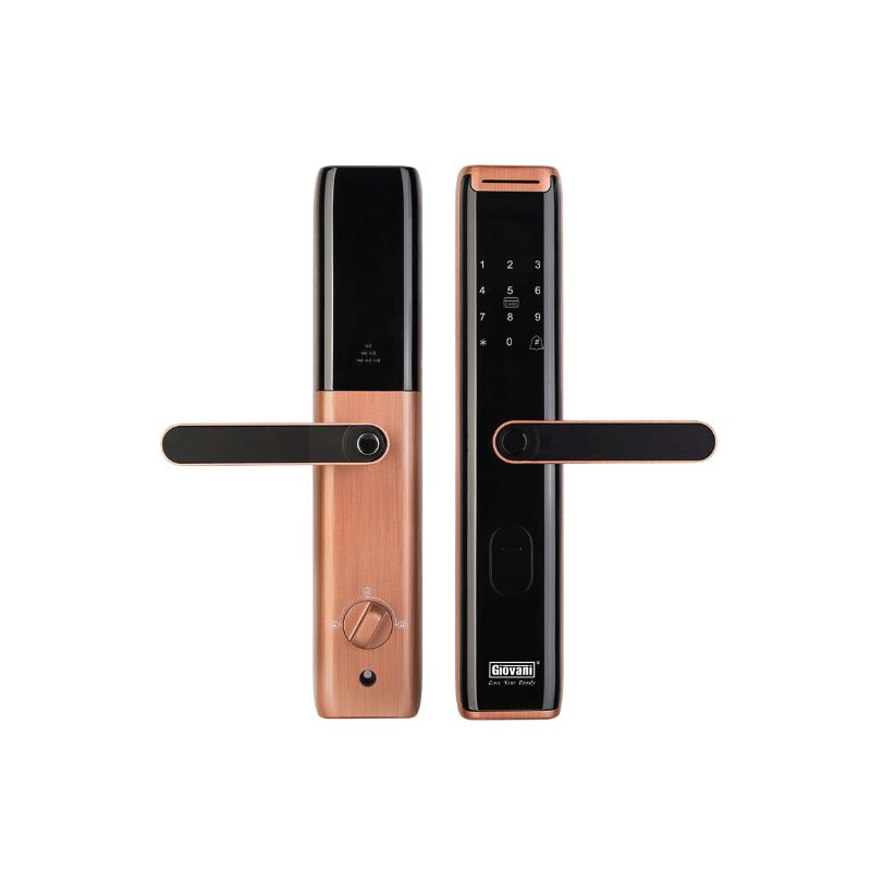Khóa cửa thông minh vân tay hợp kim nhôm màu đồng mang phong cách sang trọng, tinh tế, phù hợp với nhiều không gian như căn hộ, nhà phố và biệt thự. Sản phẩm tích hợp các phương thức mở khóa hiện đại cùng công nghệ bảo mật tiên tiến, giúp nâng cao sự tiện nghi và an toàn cho người sử dụng.