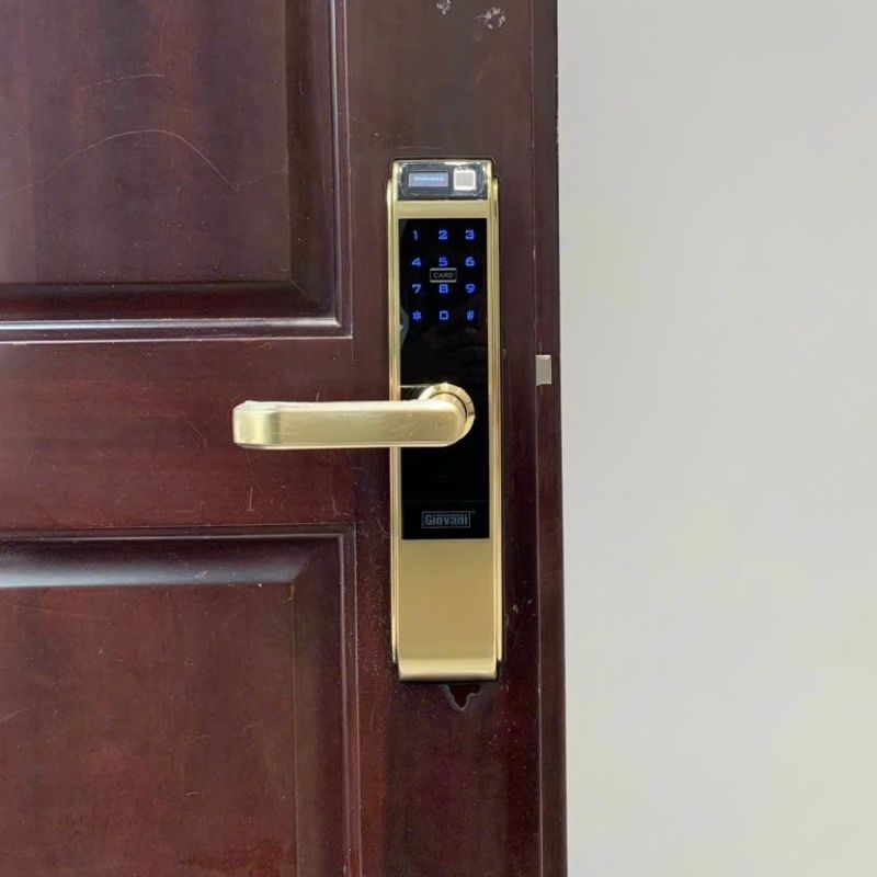 Khóa cửa thông minh vân tay Inox 304 màu vàng nổi bật với thiết kế sang trọng, chắc chắn, phù hợp cho biệt thự, nhà phố và căn hộ cao cấp. Với chất liệu inox bền bỉ cùng công nghệ mở khóa hiện đại, sản phẩm mang đến sự an toàn, tiện lợi và độ bền vượt trội theo thời gian.