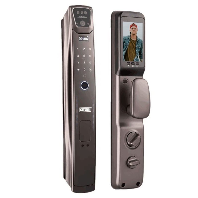 Khóa cửa thông minh nhận diện khuôn mặt hợp kim nhôm màu nâu tích hợp camera mang đến giải pháp an ninh hiện đại, kết hợp giữa công nghệ nhận diện tiên tiến và thiết kế sang trọng. Sản phẩm không chỉ giúp mở khóa nhanh chóng bằng khuôn mặt mà còn tích hợp camera, chuông cửa và màn hình, cho phép quan sát và đàm thoại 2 chiều tiện lợi, phù hợp cho biệt thự, căn hộ cao cấp và nhà phố.