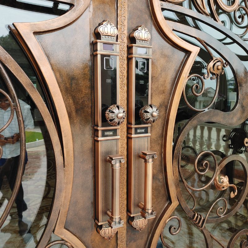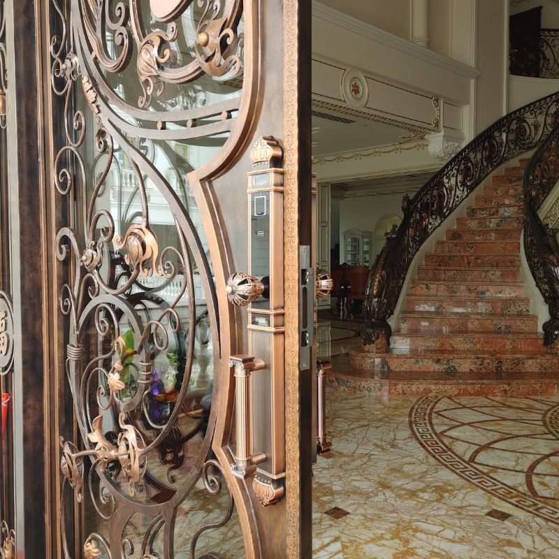 - Chất liệu đồng nguyên khối: Bền bỉ, chống ăn mòn và tăng độ sang trọng cho cửa.