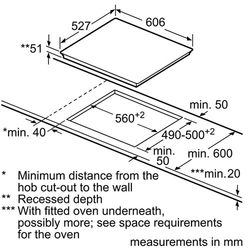 Kích thước bếp từ Bosch 3 vùng nấu PUJ61RBB5E lắp âm