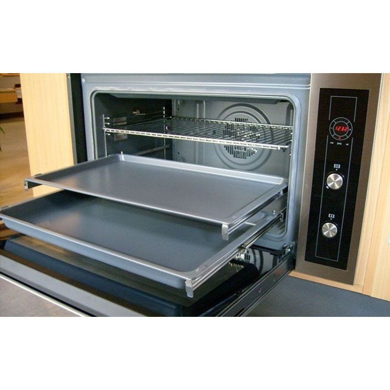Thiết kế tinh tế, hiện đại: Mặt ngoài bằng thép không gỉ chống bám vân tay, tay nắm chắc chắn, bảng điều khiển cảm ứng kết hợp nút pop-up và màn hình hiển thị kỹ thuật số sang trọng, dễ thao tác. Khoang lò được tráng men đặc biệt giúp tăng hiệu quả làm sạch và kéo dài tuổi thọ.