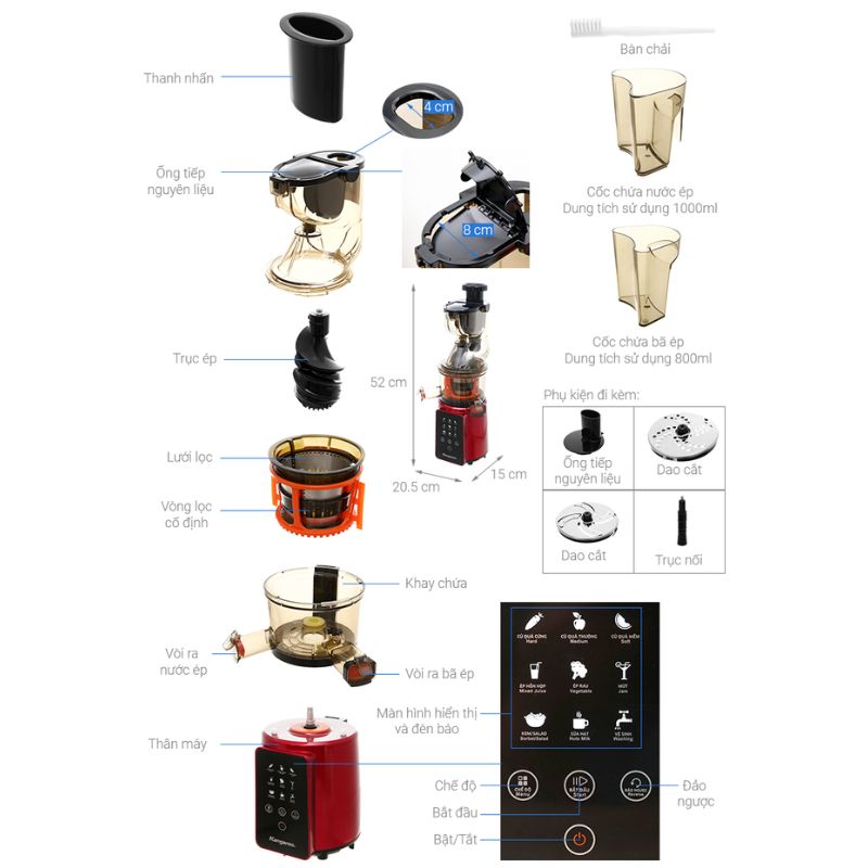 Máy ép chậm Kangaroo KG200SJD1 hoạt động với công suất 200W và công nghệ ép chậm, giúp ép kiệt bã nhưng vẫn giữ lại khoảng 80% dưỡng chất tự nhiên của rau củ quả, mang đến những ly nước ép thơm ngon, bổ dưỡng.