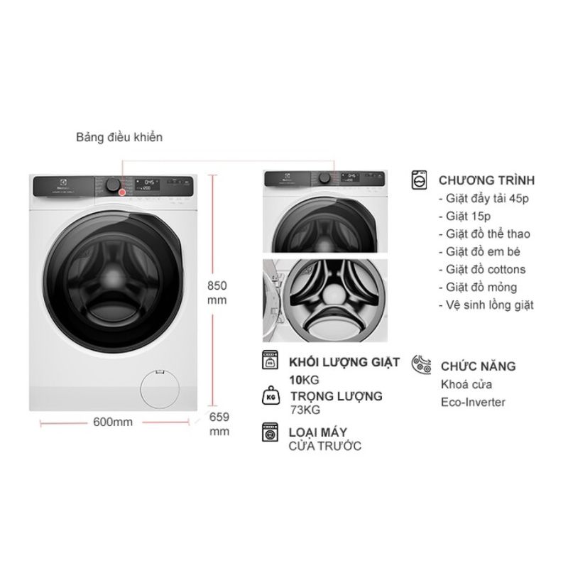 - Động cơ EcoInverter: Vận hành êm ái, tiết kiệm điện năng và tăng độ bền.