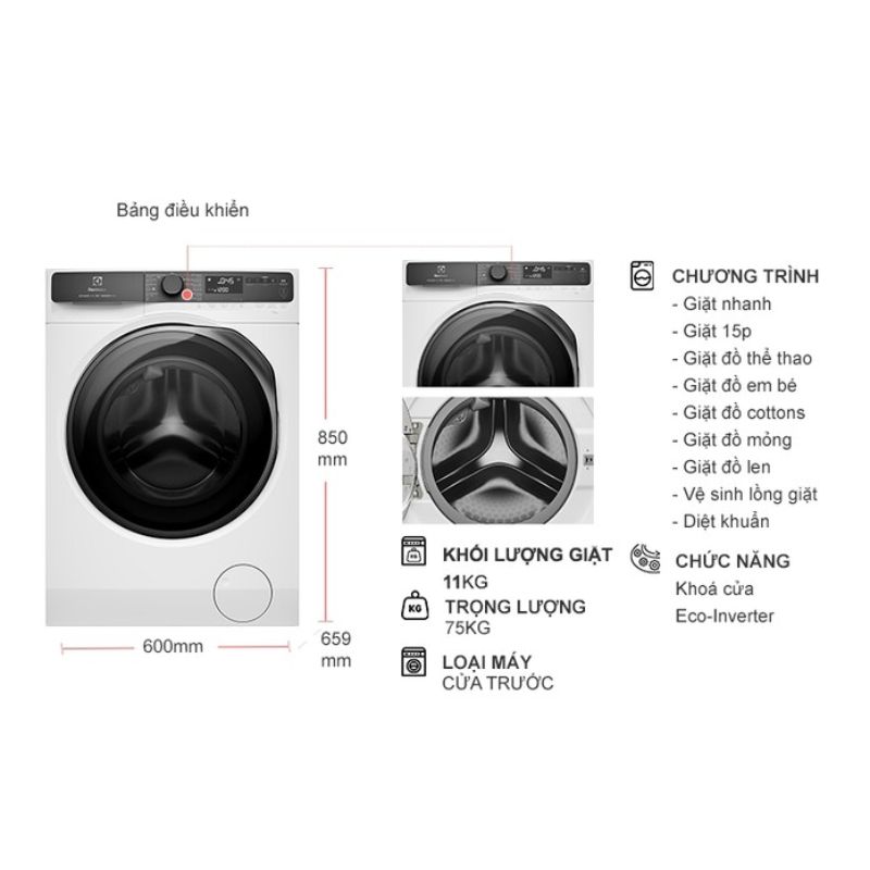| Tên sản phẩm | Máy giặt Electrolux Inverter 11 Kg EWF1143R7WC |