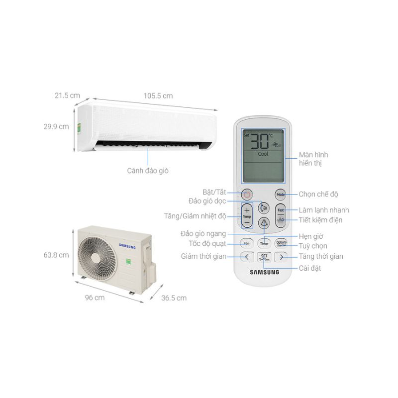 - Làm lạnh nhanh Fast Cooling, lan tỏa gió xa đến 15m