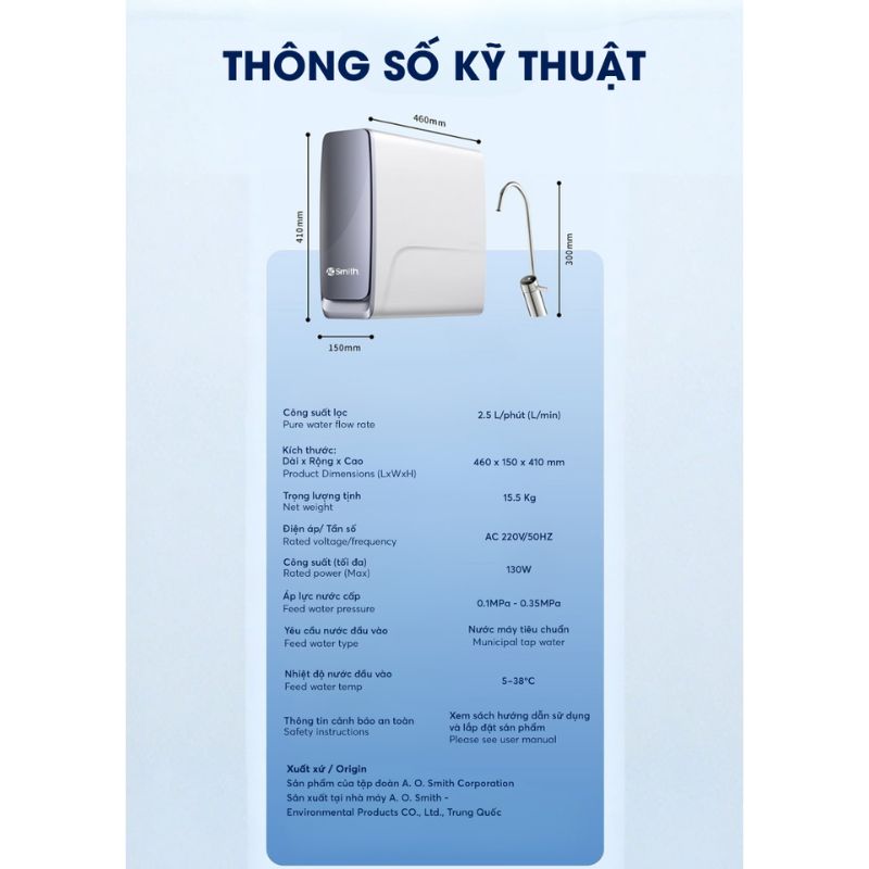 | Áp suất nước cấp phù hợp | 0.1 - 0.35MPa |