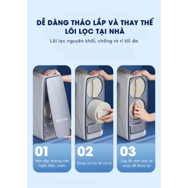 - Công nghệ RO – Side Stream 4.0 độc quyền từ A. O. Smith: Sản phẩm được trang bị công nghệ lọc RO – Side Stream 4.0 tiên tiến, ứng dụng màng lọc RO thế hệ mới với tuổi thọ lên đến 6 năm (lần đầu tiên xuất hiện tại Việt Nam). Công nghệ này không chỉ nâng cao hiệu suất lọc mà còn giúp tăng tỷ lệ thu hồi nước tinh khiết lên đến 75% – mức cao hàng đầu trên thị trường hiện nay, góp phần tiết kiệm nước và giảm chi phí vận hành.