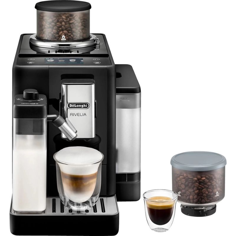Máy pha cà phê DeLonghi Rivelia EXAM440.55.B là thiết bị đặt trên mặt bàn bếp, thiết kế nhỏ gọn và sang trọng, phù hợp cho gia đình hoặc văn phòng. Với công suất 1450W và hiệu suất năng lượng loại A, máy hoạt động mạnh mẽ nhưng vẫn tiết kiệm điện, giúp bạn thưởng thức cà phê chất lượng ngay tại nhà.