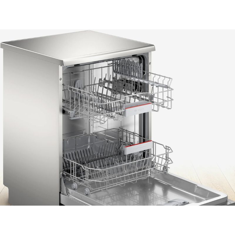 - Dung tích 13 bộ – Phù hợp 3 đến 4 bữa ăn Việt: Bosch SMS4ECI01P có sức chứa 13 bộ chén đĩa châu Âu, đáp ứng tốt nhu cầu rửa chén cho gia đình 4 – 5 người, tương đương 3 – 4 bữa ăn Việt. Khoang rửa rộng cho phép rửa đa dạng vật dụng từ chén, bát, ly cốc đến xoong nồi kích thước vừa và nhỏ, giúp tiết kiệm thời gian và công sức đáng kể.
