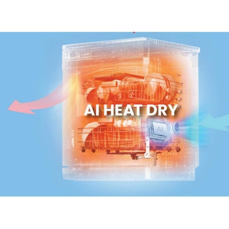 Máy ứng dụng công nghệ sấy khí nóng với thanh gia nhiệt kết hợp lượng nhiệt dư từ nước nóng trong quá trình rửa. Hệ thống quạt gió đối lưu giúp luồng khí nóng lan tỏa đều, nâng cao hiệu quả sấy khô chén bát, đồng thời tiết kiệm năng lượng.