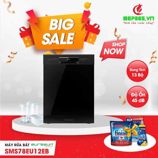 - Nằm trong bộ sưu tập mới nhất của Eurosun, thuộc series 7, Eurosun SMS80EU16E nổi bật với tone màu bạc sang chảnh. Với sức chứa tới 15 bộ bát đĩa Châu Âu, thiết bị phù hợp cả với những gia đình đông thành viên nhất.