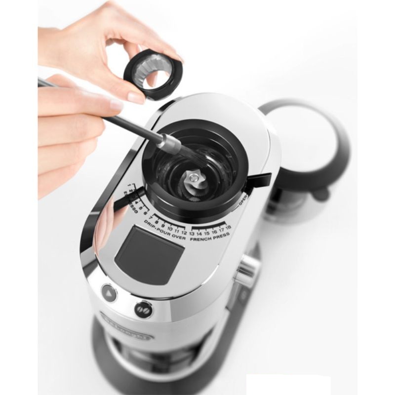 - Thiết kế hiện đại, bền bỉ và tiện dụng: Delonghi KG521.M có kiểu dáng nhỏ gọn, hiện đại với lớp vỏ kim loại chắc chắn, sang trọng và dễ vệ sinh. Lưỡi xay làm bằng thép không gỉ có thể tháo rời, thuận tiện cho việc vệ sinh sau mỗi lần sử dụng.
