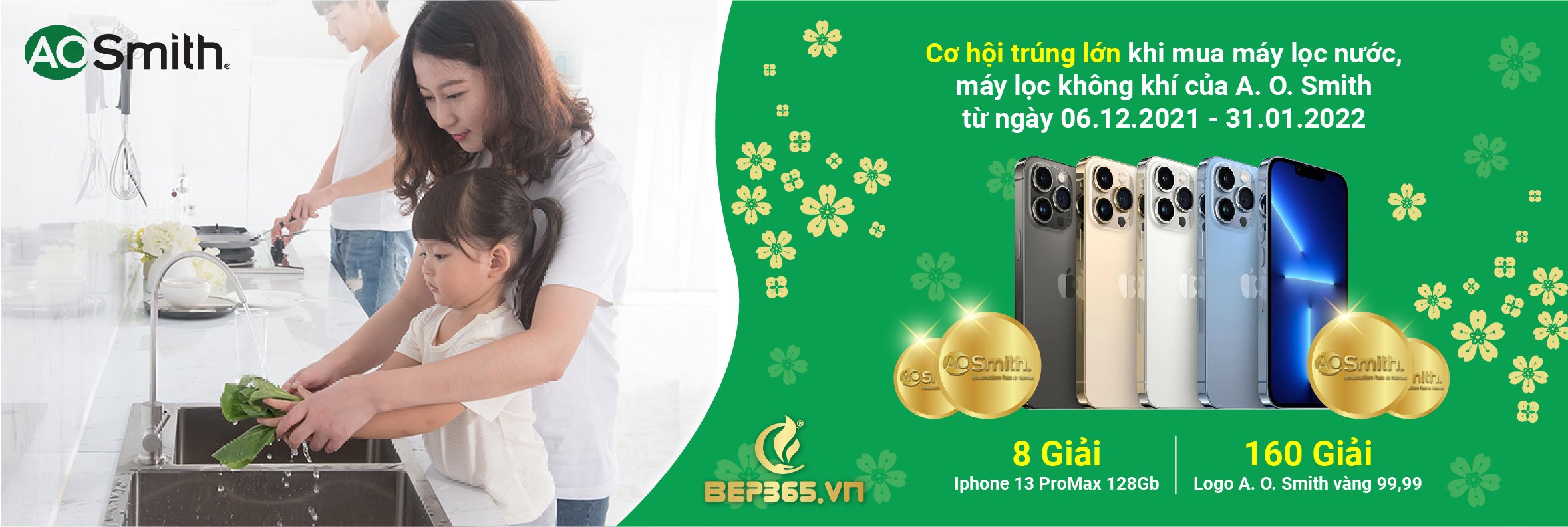 Cuối năm không chỉ là dịp sắm sửa, trang hoàng nhà cửa mà còn là dịp đón nhận hàng ngàn quà tặng hấp dẫn từ BEP365.VN và thương hiệu A.O.Smith như CHỈ VÀNG SJC 9999, IPHONE 13 PROMAX! Dễ tham gia, dễ trúng thưởng! Thời gian diễn ra chương trình chỉ kéo dài đến hết 31/01/2022 , nhanh đến ngay hệ thống showroom của BEP365.VN trên toàn quốc để có cơ hội trở thành chủ nhân may mắn của chiếc IPHONE 13 PROMAX và CHỈ VÀNG SJC 9999!