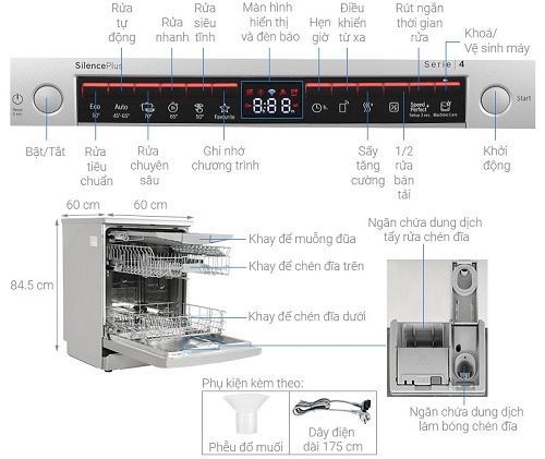 Thông số kỹ thuật của máy rửa bát độc lập Bosch SMS4HMI07E serie 4