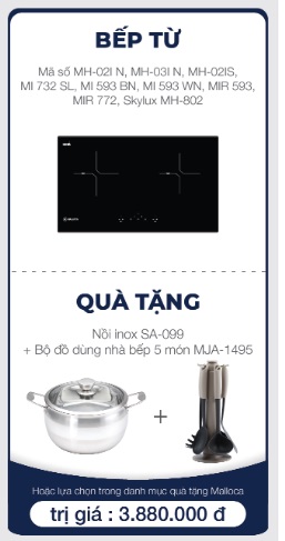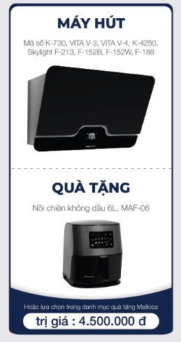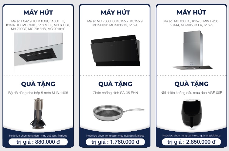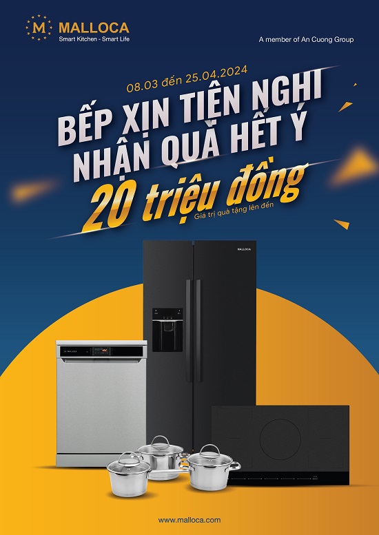 Nhận ngay quà tặng hấp dẫn lên đến 20 triệu khi mua thiết bị nhà bếp Malloca trong chương trình "BẾP XỊN TIỆN NGHI, NHẬN QUÀ HẾT Ý". Nhanh tay chớp ngay cơ hội sở hữu những sản phẩm cao cấp, chất lượng với giá ưu đãi cùng kèm quà tặng có giá trị hấp dẫn.