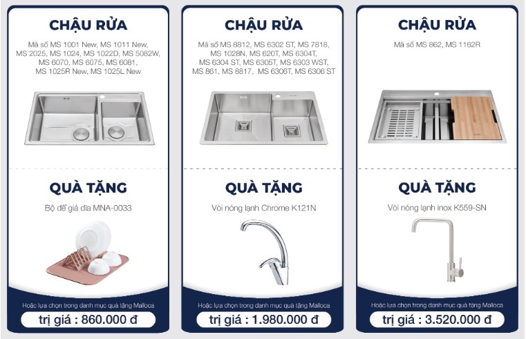 (Khách hàng được lựa chọn trong danh mục quà tặng Malloca khi đạt giá trị đơn hàng)