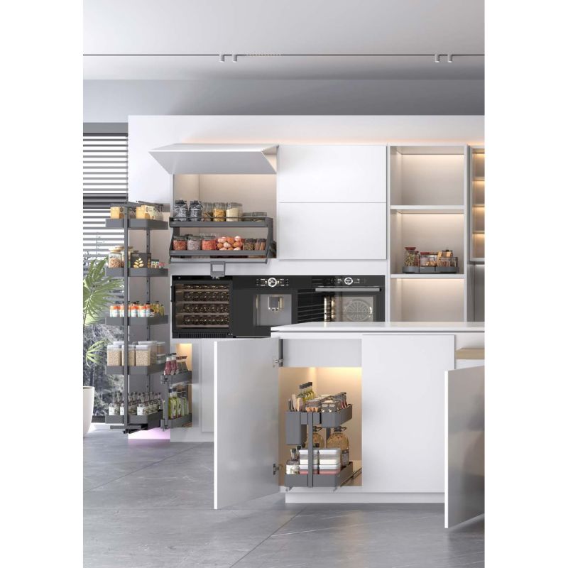 Hafele Utensio 504.68.390 (cánh kéo – 400 mm) là phụ kiện tủ bếp cao cấp giúp tối ưu hóa không gian lưu trữ và mang đến sự thuận tiện vượt trội cho người dùng. Với thiết kế dạng cánh kéo toàn phần, bạn có thể dễ dàng quan sát toàn bộ vật dụng bên trong và lấy đồ nhanh chóng mà không cần cúi người hay với cao.