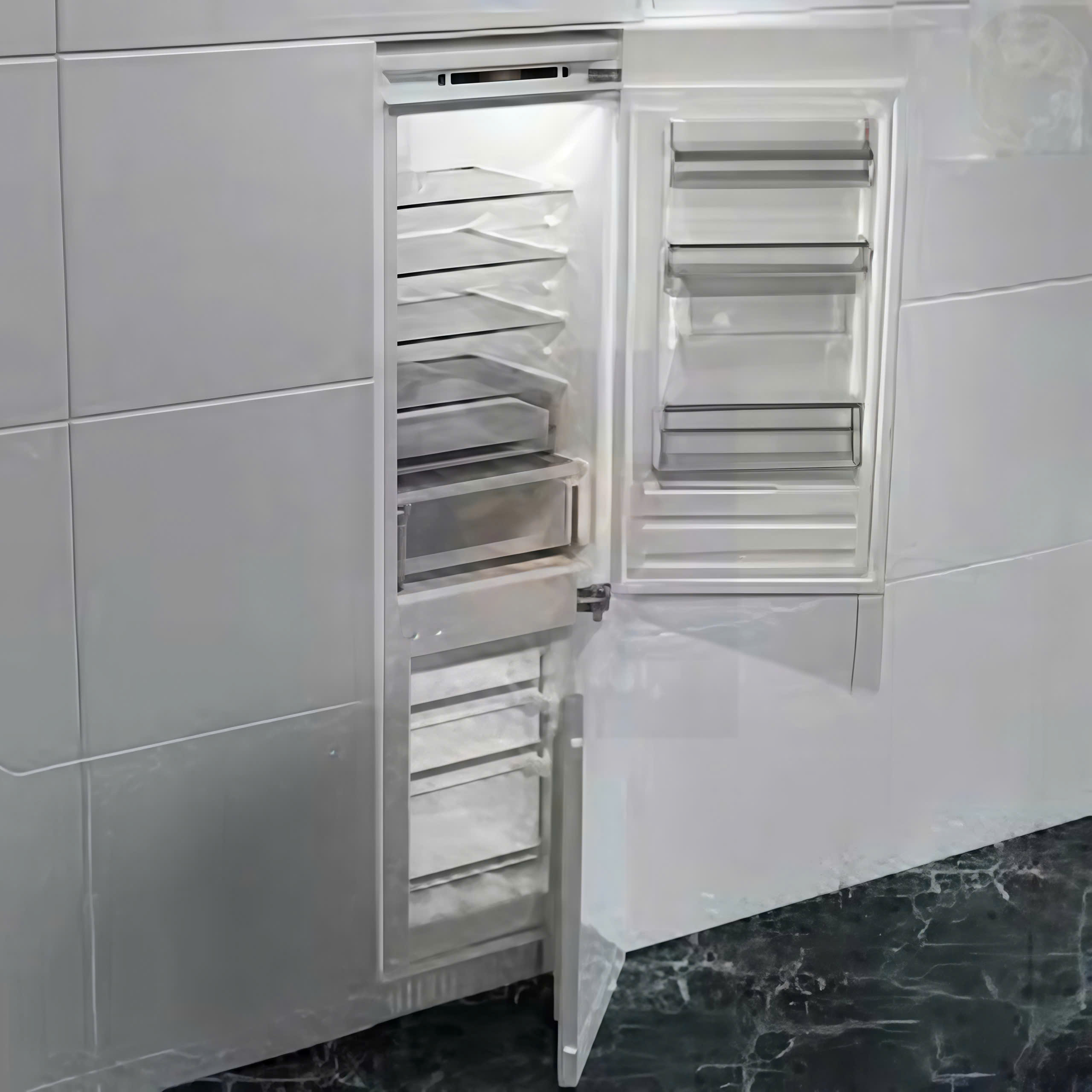 Tủ lạnh 2 cửa lắp âm giúp hòa hợp hoàn hảo với nội thất, tạo tổng thể liền mạch cho gian bếp.