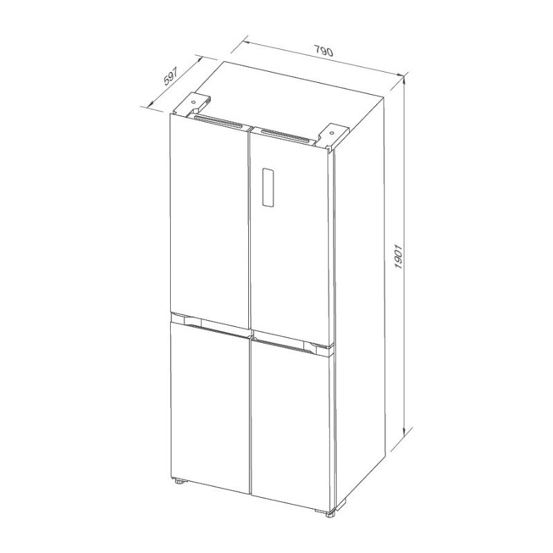 Thiết kế Kitchen-Fit tối ưu không gian: Kích thước W790 × D595 × H1900 mm giúp tủ lắp đặt gọn gàng, phẳng mặt với hệ tủ bếp, tạo sự đồng bộ thẩm mỹ cho căn bếp.