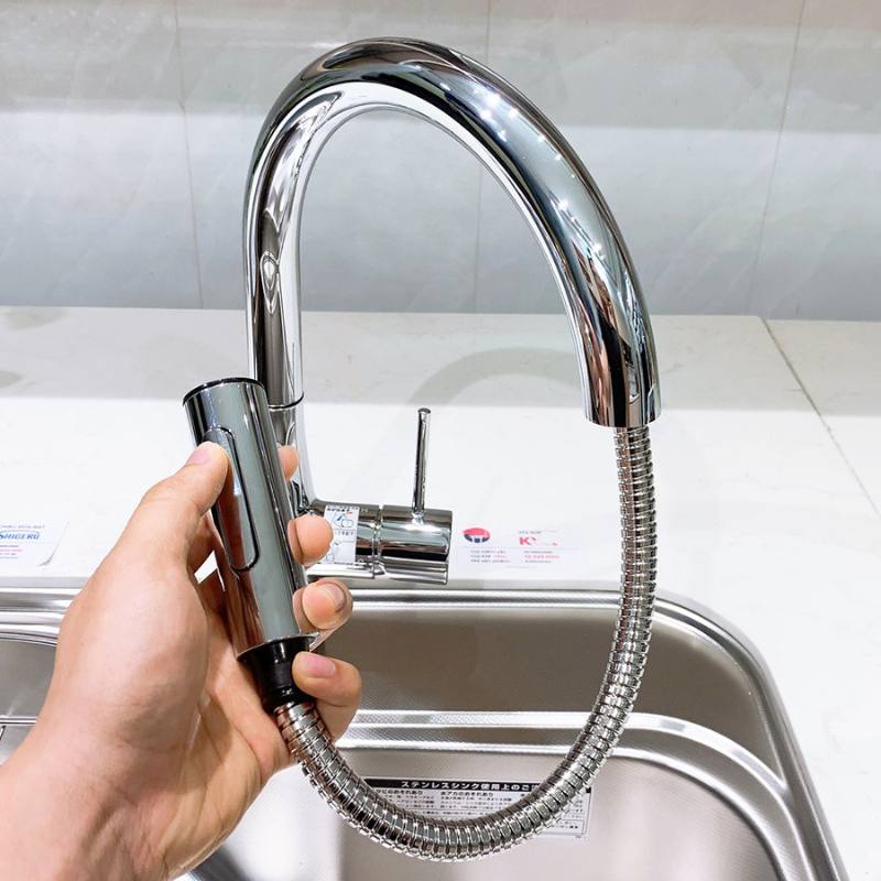 - Chức năng kéo dài đầu vòi: Đầu vòi có thể kéo rút linh hoạt giúp mở rộng phạm vi sử dụng, thuận tiện khi vệ sinh toàn bộ bồn rửa cũng như các vị trí khó tiếp cận.