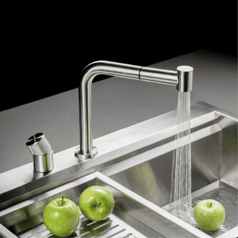 Dây rút linh hoạt: Đầu vòi có thể kéo dài để vệ sinh các vị trí trong chậu dễ dàng.